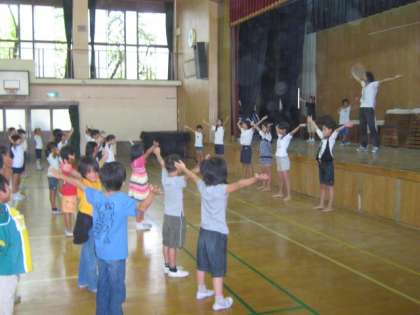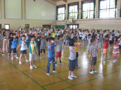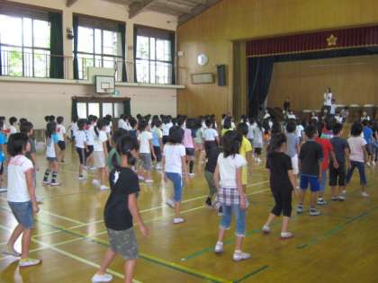全校ダンスの練習を中間休みにしています。今日は,中学年です。