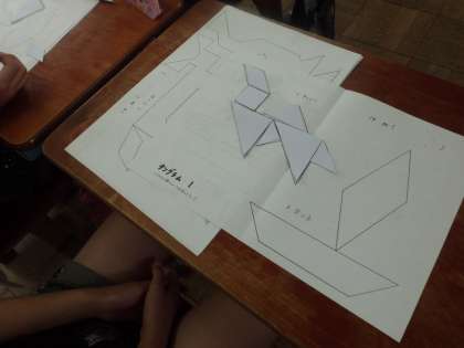 簡単な図形は早くできていますが,少しややこしくなると四苦八苦です。でも,このような学習も,これからの図形の学習に役立ってきます。