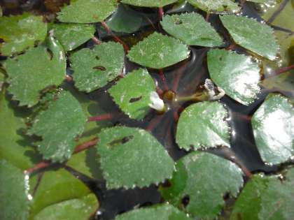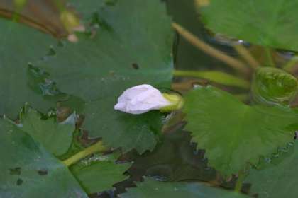 観察池のヒシが花をつけているのを見つけました。実がなるのだから花が咲くのは当然なのですが,1日花なのでなかなか見つけられません。