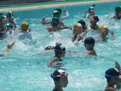 午前中は低学年です。学習相談の後さっそくプールへ直行です。夏休みに入り,プールの水を入れ替えなければならなかったため,今日が初めてのプールとなります。水も新しく,冷たくてとても気持ちよく泳いでいます。