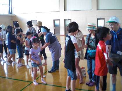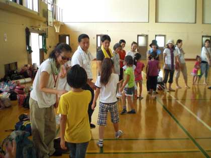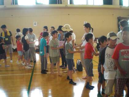 開会式の後,子どもたちとスタッフのみなさんとの握手がありました。二日間よろしくお願いします。