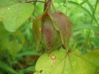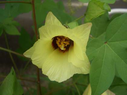 園芸委員会が育てている綿。花の後にコットンボールができています。これが大きくなってはじけると,綿が出てきます。楽しみですね。花もまだまだ咲いてきています。
