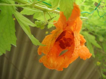 ツルレイシの熟した実を紹介しましたが,その実がはじけました。中をのぞくと種のまわりが赤くなっています。熟したツルレイシは,青い時と違ってとても甘いのです。もうすぐアリでいっぱいになることでしょう。