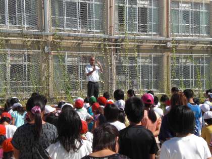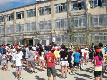長い夏休みが終わり,今日から授業を再開しました。朝会では校長先生より「秋・冬にかけての取組に対して力いっぱい活動しましょう。」というお話がありました。