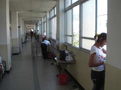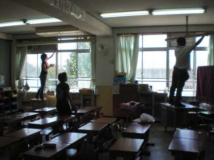 子どもたちがたてわり掃除や教室掃除をしている間に,PTAのみなさんが,日ごろ子どもたちが手の届きにくい所や高い所などの掃除をしてくださいました。その後,中庭やグリーンベルトの掃除もしていただきました。暑い中,ありがとうございました。お疲れ様でした。