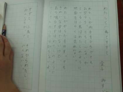 詩を視写し,詩の中に出てくる言葉が表している情景をとらえ,書き込みをしながら,詩を読み味わい,楽しんで音読します。