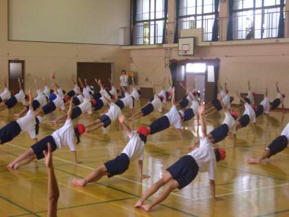 6年生の組み体操の練習が始まっています。去年の6年生の姿を見ていた,現6年生。今年は自分たちの力でという思いが強いようです。集中して練習に取り組んでいます。まだまだ始まったばかりですが,この調子だと,きっと素晴らしい組み体操を演じてくれるものと思います。