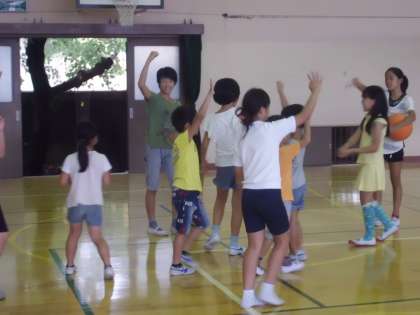 児童集会の後,たてわり遊びです。体育館や運動場,中庭,教室で楽しく活動しています。30日に行われる運動会もたてわりグループで行われます。
