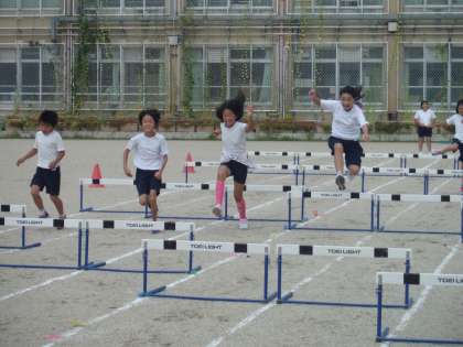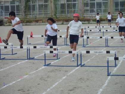 5年生は運動会の個人走でハードル走をします。4月にもハードル走をしていますが,その時とは自分に合ったハードルの間隔も違うようです。今日は自分にあったハードルの間隔をつかむため,何度も走っています。