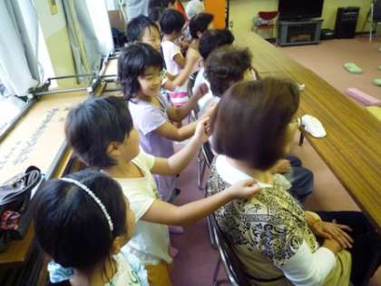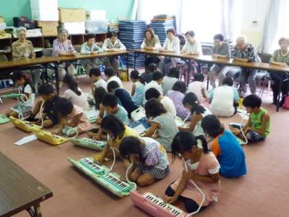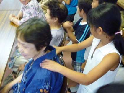 今日のすこやか学級は、2年生が担当しました。はじめに、鍵盤ハーモニカの合奏と歌を聞いてもらいました。その後、皆さんに喜んでいただけるように、心をこめて肩もみや肩たたきをしました。肩もみをしながら、楽しくおしゃべりもしました。