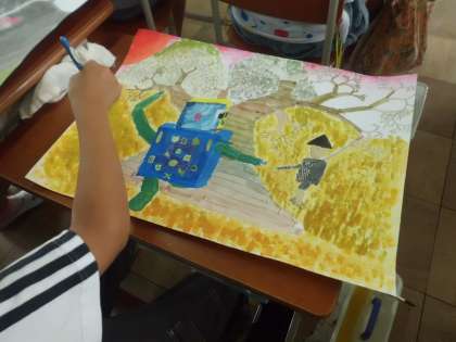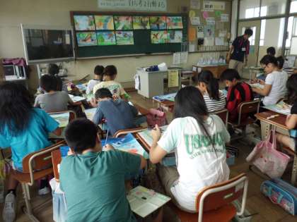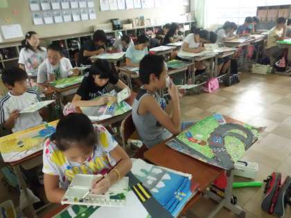 6年生もお話の絵に取り組んでいます。絵具の使い方も,さすが6年生です。
