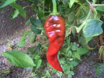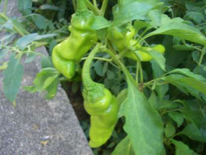 2年生の野菜園で真っ赤に熟れた万願寺とうがらしを発見。どうも,収穫忘れのようです。赤く熟れたのもおいしく頂けますよ。まだまだ,おいしそうなとうがらしができています。