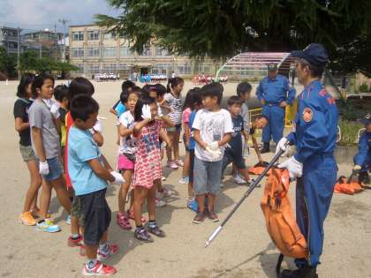今日は消防分団の皆さんから話を聞いたり,体験させていただいたりして,私たちの町を守る消防分団の方々のお仕事の大切さが,とても良く分かりました。待鳳消防分団の皆さん,ありがとうございました。