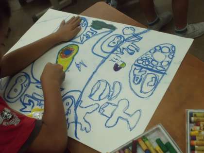 2クラスともお話の絵に取り組んでいます。それぞれ題材は違いますが,子どもたちはお話の場面を自分なりに考えて描いています。