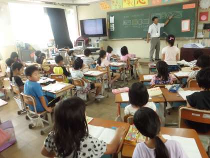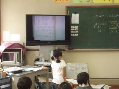 加法の3要素2段階の問題を,いろいろに考えて解きます。やって来た順に加えたり,何人増えたかを考えたり,話し合いを通して子どもの人数を求めています。