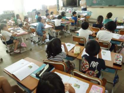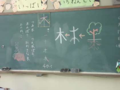 今日は漢字の「木」を学習ています。木の漢字の成り立ちや,書き順,木のつく言葉集めをしたりして,漢字を習得していきます。