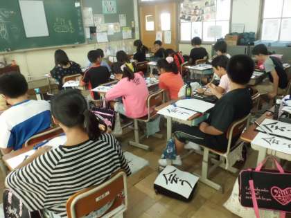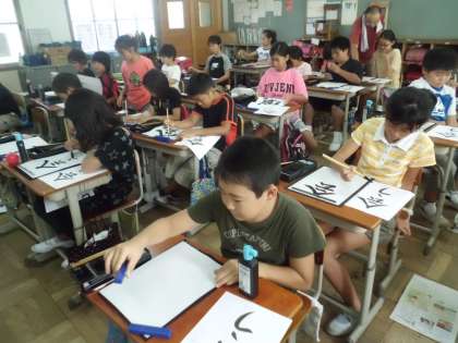 毛筆の学習です。5年生にもなると準備も早く,書くときの姿勢もよく,運筆も慣れたものです。