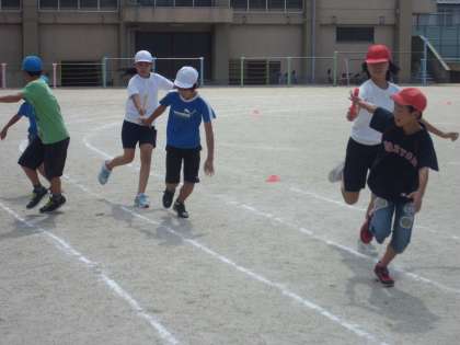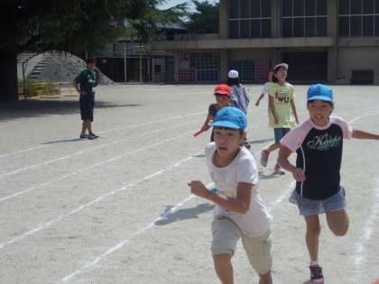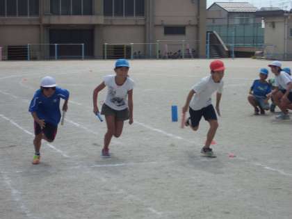高学年リレー,練習といえども,さすがに迫力がありますね。高学年リレーでは,アンカーが6年生が務める以外,走順は各色で決めます。今日の結果で組み換えがあるかもしれません。