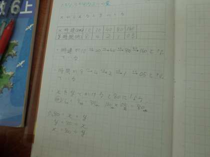 比例の学習の次は反比例の学習です。一方が2倍,3倍…になれば他方は1/2倍,1/3倍…となり,一方が1/2倍,1/3倍…になれば他方は2倍,3倍…と変化するきまりを理解できるようにします。