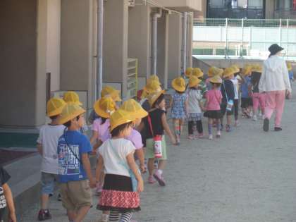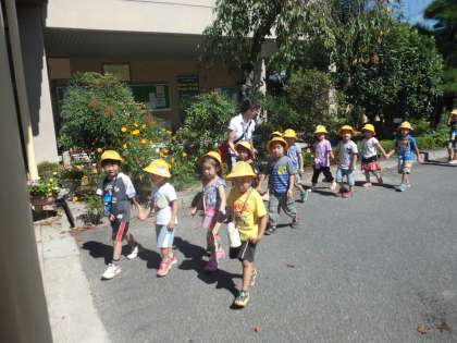 待鳳保育園の年中さんが学校に訪れました。実は,10月6日(土)に待鳳保育園の運動会が本校で行われます。広い運動場に慣れるための訪問です。園児たちは広さにびっくりしています。