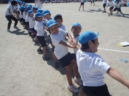 全校種目 綱引きです。どの色も同じ人数なのですが,どうして差が出るのでしょうね。