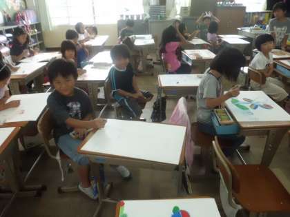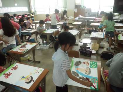 今日はどのクラスもお話の絵に取り組んでいます。そろそろ,仕上げにかかります。
