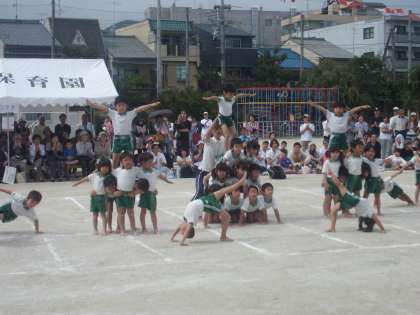 最後の大技は「お城」です。保育園児とはいえ素晴らしい仕上がりです。練習の時からガンバたことでしょう。来年は小学校に入学です。今日の力を小学校でも発揮してくれることを願っています。
