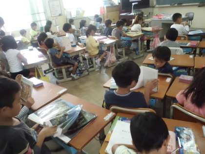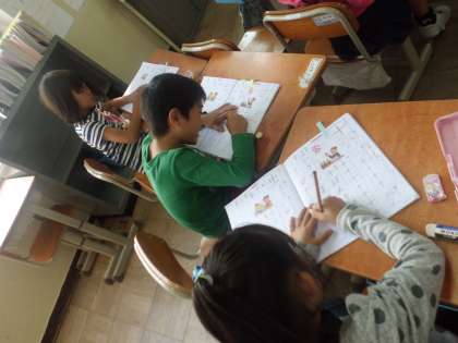1年生が6時間目の学習をしています。先日の運動会の日,暴風警報が出て授業ができなかった分を取り戻しています。読書をしたり,漢字ノートをしたり…,なれない6時間目はちょっとしんどいかな?でも,みんな頑張っています。