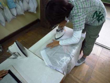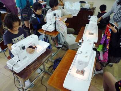 エプロン作りもそろそろ仕上段階に入っています。縫い代の部分にアイロンをかけ,周りをミシンで縫って仕上げていきます。もうすぐマイエプロンが完成します。
