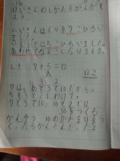 (1位数)+(1位数)で繰り上がりのあるたし算について,10の補数を利用した計算方法を考えています。