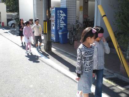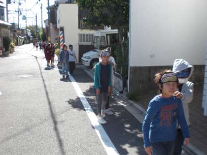 3年生では総合的な学習の時間に,目の不自由な人の立場について考える学習を進めています。今日は,3年1組が学校の周りをアイマスクをつけて歩く体験をしました。学校の中と違って,段差もあるし自転車や車も通るので,安全に歩けるようにとても緊張しました。