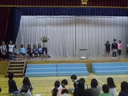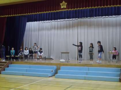10月31日に行われる4・6年の学習発表会。4年生が体育館で練習をしています。さて,当日はどんな発表になるのでしょう。楽しみです。