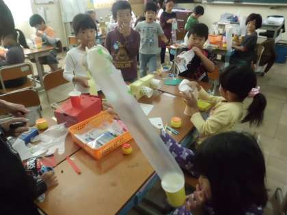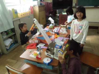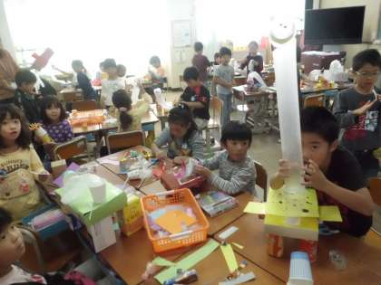 だんだんと作品が仕上がっています。みんな楽しい仕組みを考えています。びっくりですね。