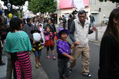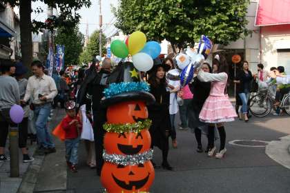 ハロウィンパレードの様子です。みんな楽しい仮装です。新大宮商店街が盛り上がりました。いつも,活気あふれる商店街であることを願っています。