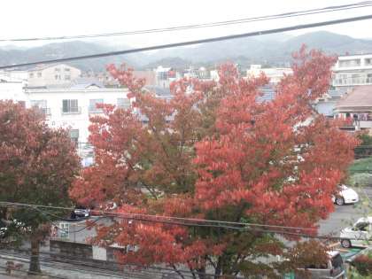 北山通のケヤキが真っ赤に染まってきています。