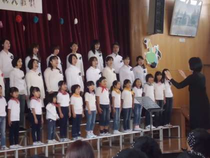 参加した子どもたちも楽しそうに頑張って歌っていました。最後は全員合唱で「歌え!バンバン」を歌いました。秋の一日,心を和ませてくれました。参加されたみなさん,ご苦労様でした。営していただいた元町小学校PTAの皆様,ありがとうございました。楽しい半日を過ごすことができました。