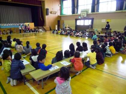 今日は,みんなで準備してきたワクワクフェスティバルの日です。仲よし学級と1年生のみんなを迎えて,はじめの会をしました。みんなで,お店屋さんの紹介や,遊び方の約束などを確かめ合いました。