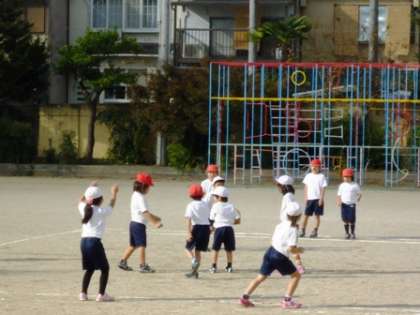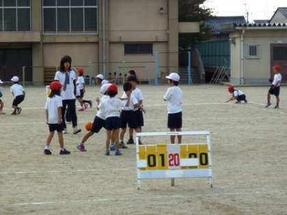 久しぶりに暖かい日差しが差す運動場で,パスゲームをしました。何回も学習を重ねてくると,上手にゲームが進められるようになってきました。今日は,新しい学生ボランティアの先生にも入っていただきました。