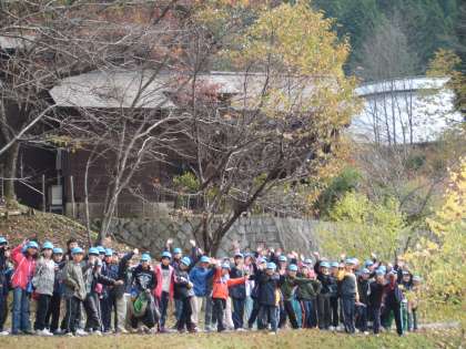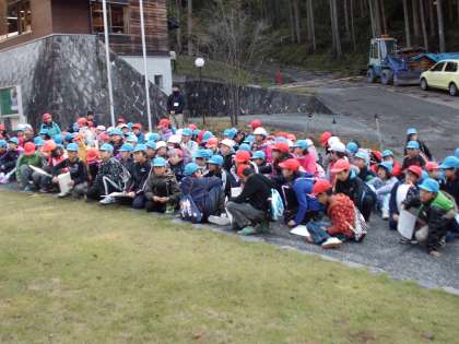 今日は三校合同で,交流の森を散策します。散策といっても少し険しい山道もあります。みんなで協力し助け合いながら無事走破してほしいです。