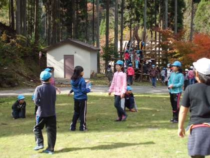 ゴールの後,みんなで仲良く遊んでいます。只今,入浴中。この後,午後6時から夕食ですが,交流の森でエネルギーをいっぱい使っているので,食事の量はぐっと増えそうです。