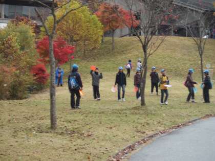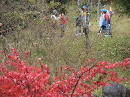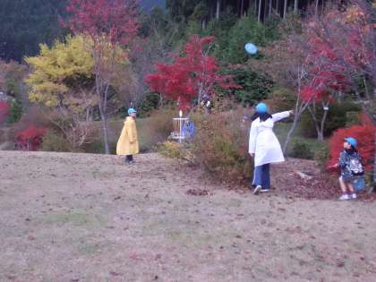花背の紅葉の中でのフライングディスクゴルフ,気持ちいいでしょうね。子どもたちも協力しながら楽しそうに活動しています。