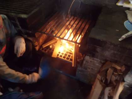 材料をきり終え,ご飯を炊く準備ができ,かまどで火お越しです。なかなか燃やすことができませんでしたが,ちょっと先生たちの力を借りて無事燃やすことができました。
