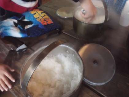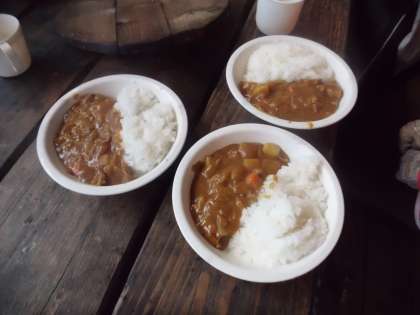 カレーの完成!!もちろん,ご飯もです。出来上がりを見てください。