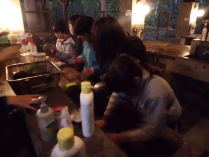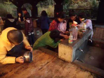 ああ,おいしかった,ではすみません。これからが大切です。もちろん,後片付けです。テーブルやかまどの掃除は当たり前ですが,ここで厳しいチェックが入ります。それは,調理に使ったおなべや食器です。一番苦労したのがおなべです。なかなかOKがでません。当然ですよね,次に使う人がいるのですから。返されるたびに,みんな最初に借りた時よりきれいにしようと一生懸命です。子どもたち,苦労はしたけど,とても大切なことを学びました。