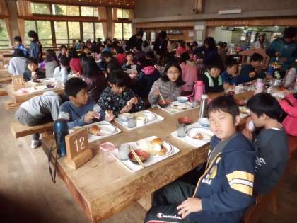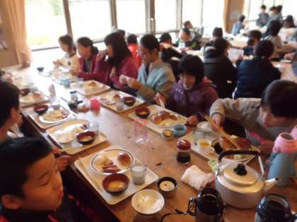 みんな元気で,朝食もしっかり食べています。