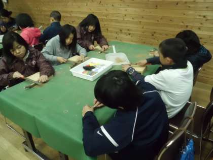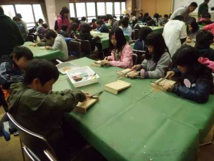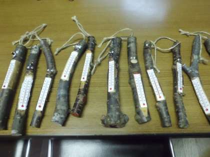 いよいよ最後の活動,小枝温度計を作ります。小枝の雰囲気を生かして素敵な温度計が出来上がってきています。