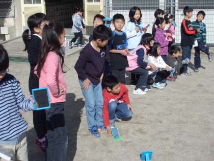 学習のはじめに鏡を使って,自分たちで考えられる活動をしています。光を集めたり,光の道筋を調べたりと,自由な試行活動によって,子どもたちはいろいろな問題を発見していきます。