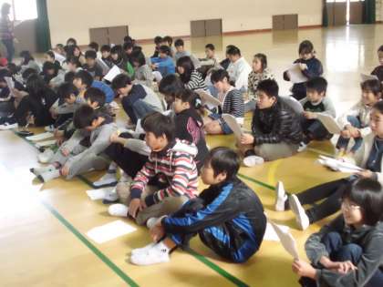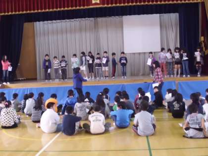 11月28日の学習発表会に向けて,体育館で練習しています。どうやら,英語劇のようです。5年生から始まった外国語活動で英語を学習しているのでチャレンジです。