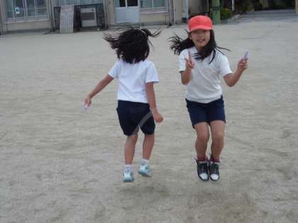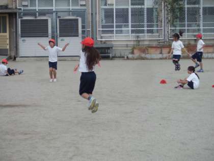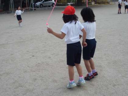 縄跳びでいろんな跳び方に挑戦しています。みんな楽しそうです。