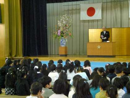 今日は,朝から入学式を祝うかのように,清々しい青空が広がりしかも暖かく,桜の花も満開近し!午前10時15分より入学式が行われました。47名の新1年生が入学しました。おめでとうございます。頑張って学校生活を送って下さい。